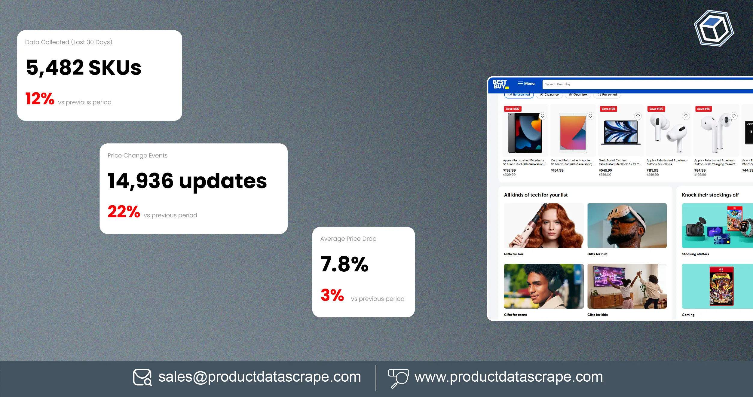 It captures real-time pricing, stock, ratings, and promotions for thousands of SKUs across categories for actionable insights.