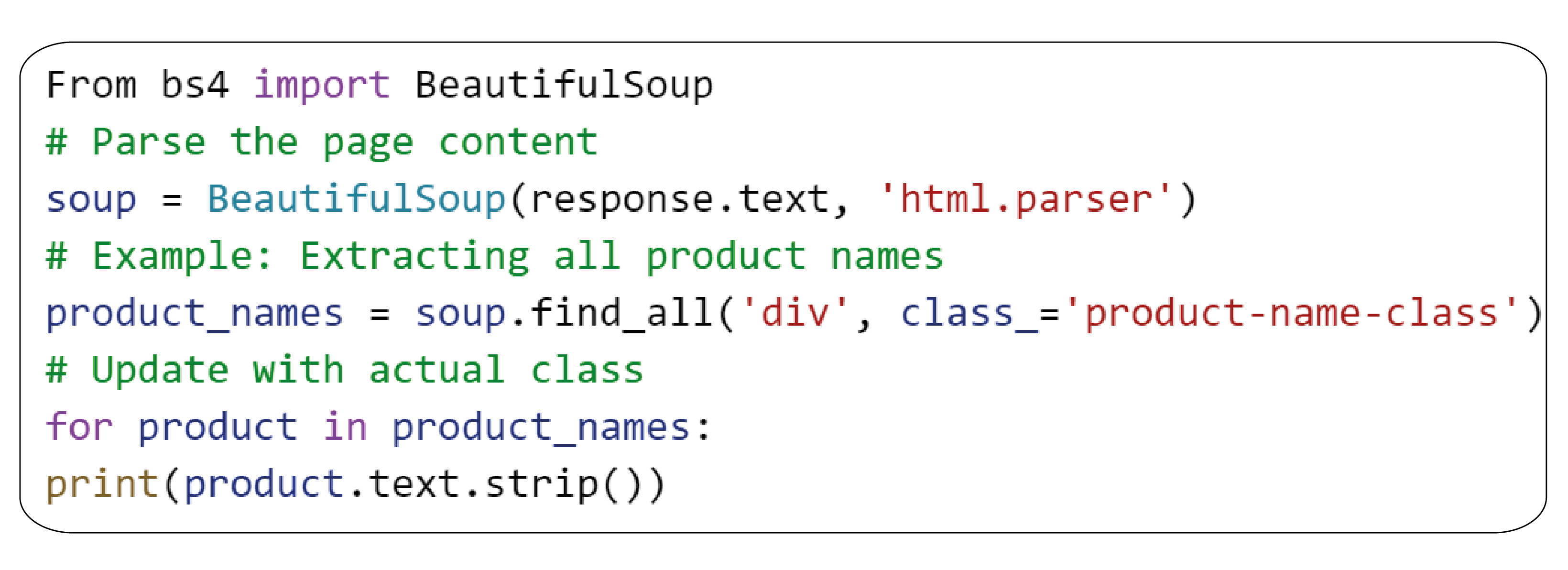 Once you've fetched the page content, the next step is parsing the HTML to extract relevant data.