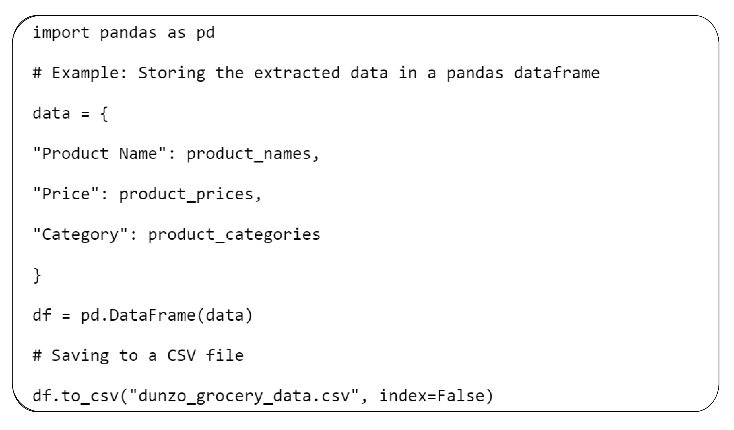 After scraping the necessary data, you'll likely want to store it in a structured format like CSV or Excel. Panda is an excellent tool for this.